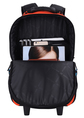 The Trolley Laptop Backpack is very spacious. It has a laptop pouch in the back main compartment that can take up to a 15.6" laptop. There is a lot of additional space in this main compartment. The front compartment is spacious. There is a front zipped pocket as well as 2 side pockets. The shoulder straps are padded for comfort as well as adjustable. When using as a trolley the shoulder straps are stored in the back padded area.